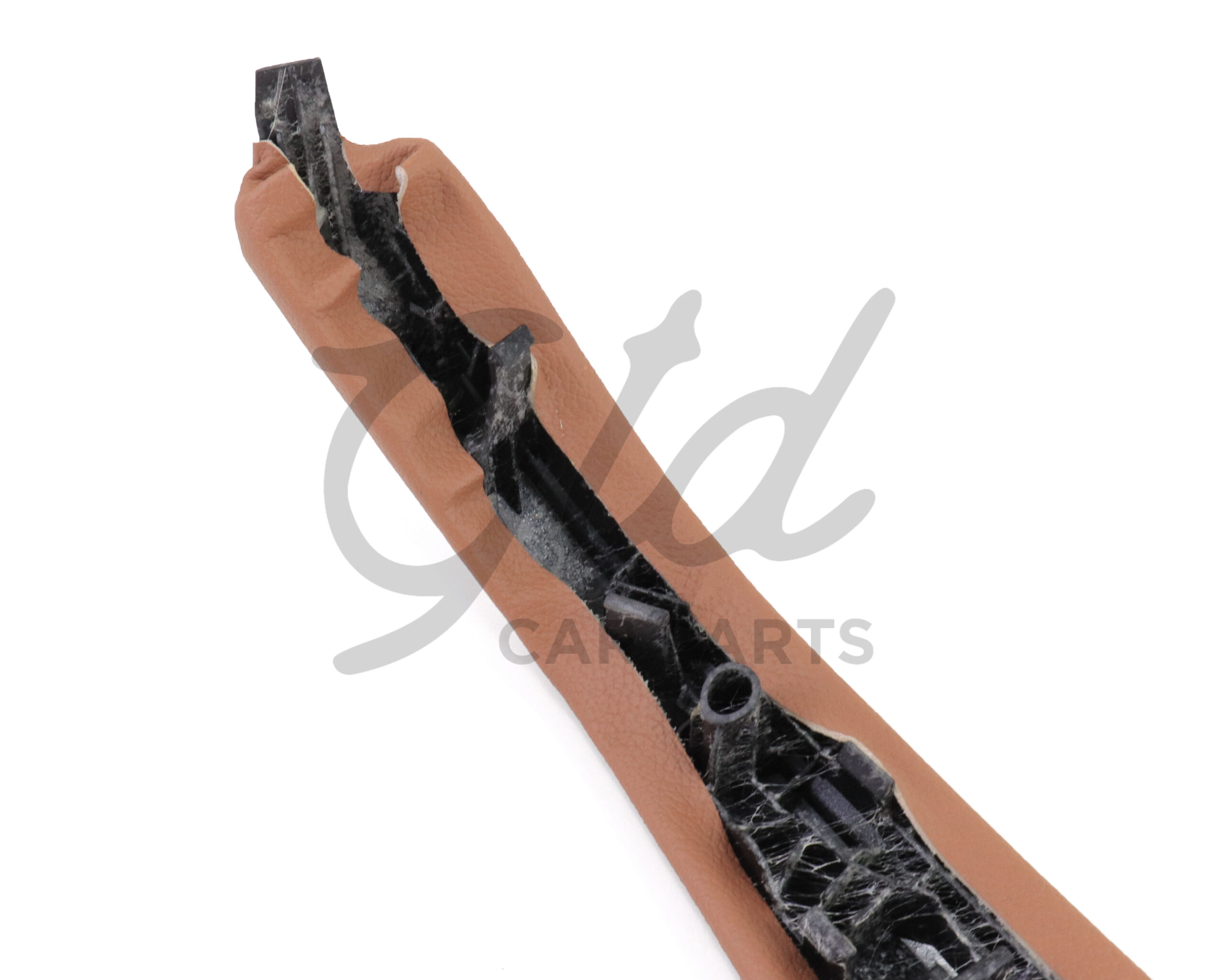 Capa de puxador interior em pele para substituição do original. A troca é direta sem necessidade de desmontar a quartela ou porta.