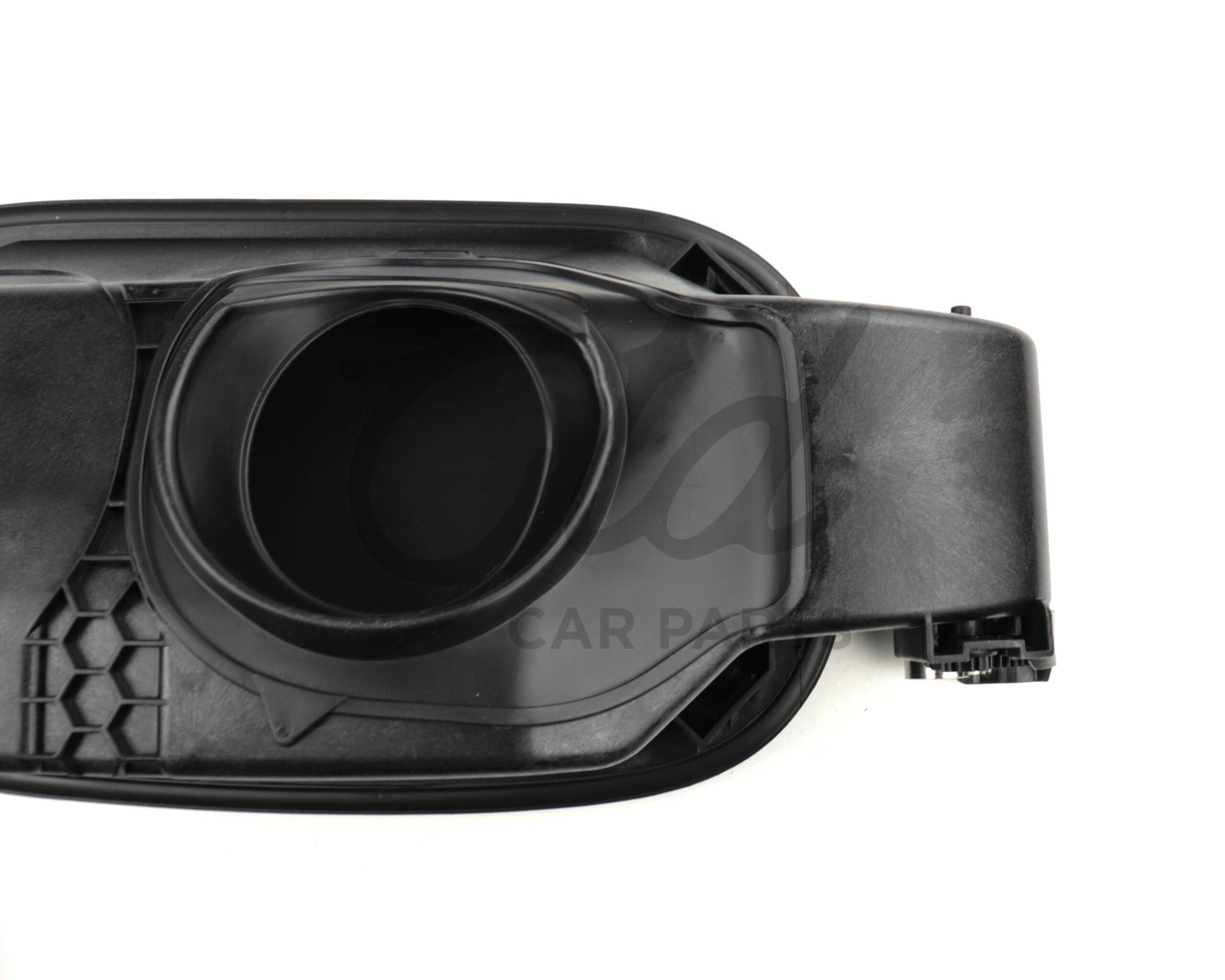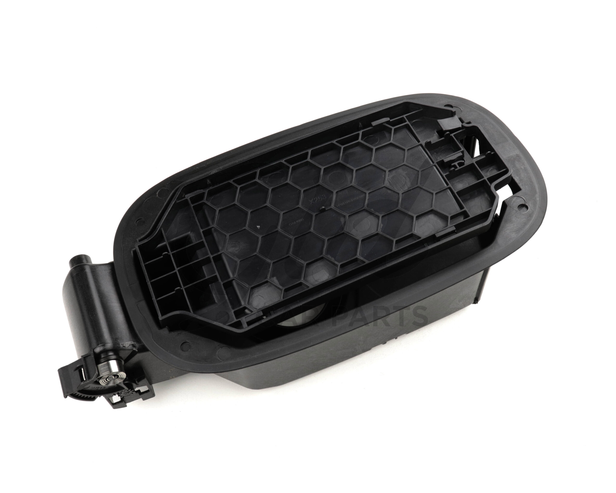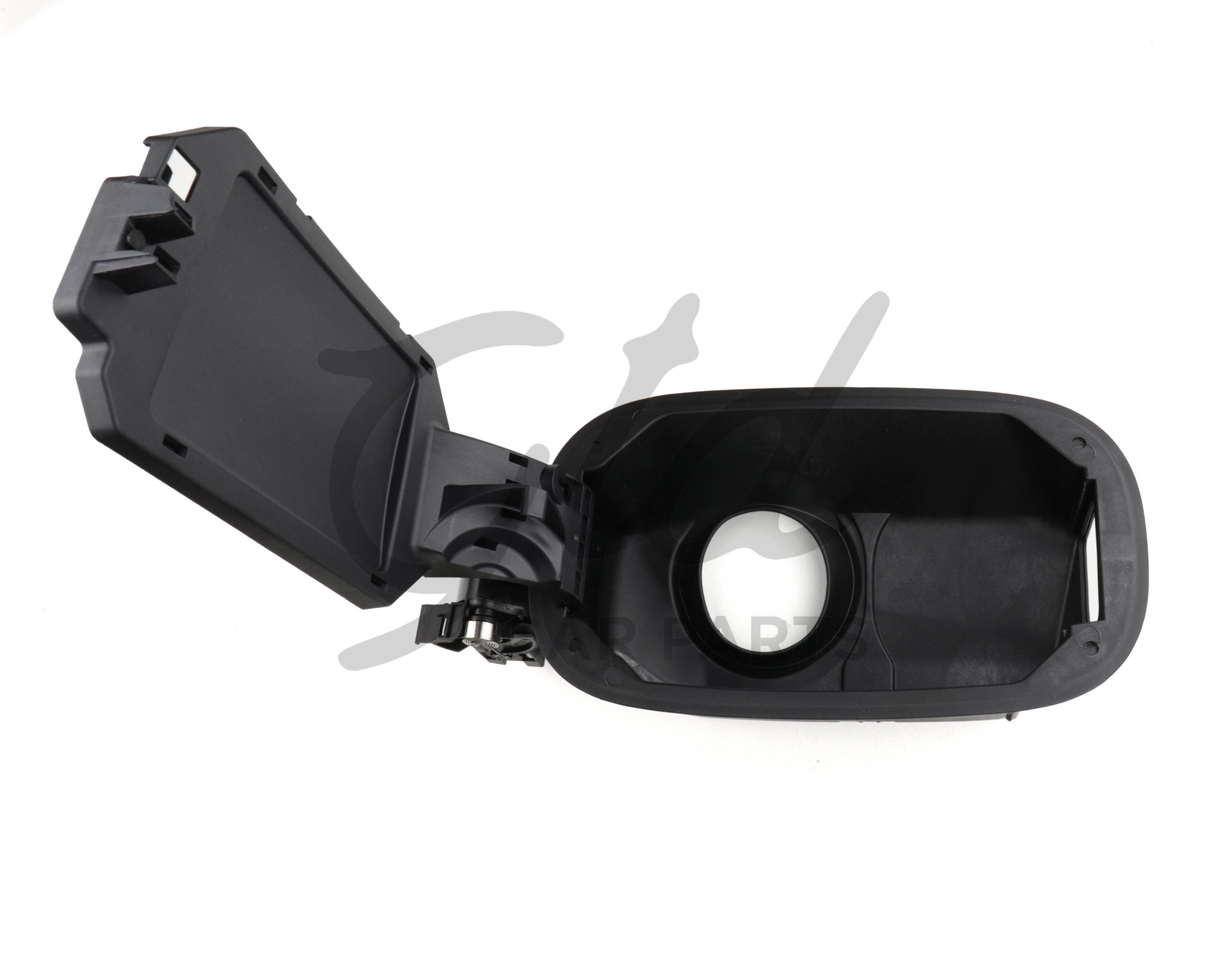 Moldura /tampa plástica de acesso ao tampão de combustível que se parte devido a defeito no plástico e com o uso.